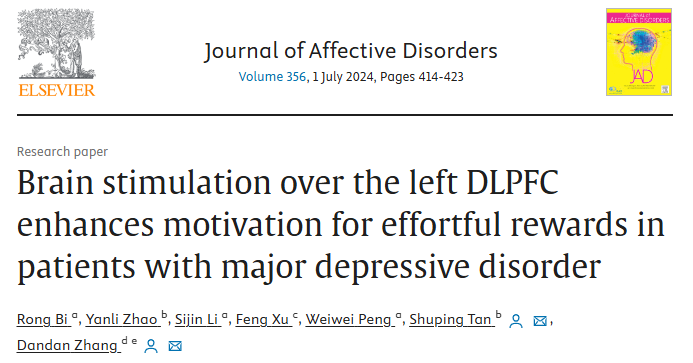 動機缺乏是重度抑郁癥(Major depressive disorder, MDD)中的典型特征之一,表現(xiàn)為減少努力的意愿。背外側(cè)前額葉皮層(Dorsolateral prefrontal cortex, DLPFC)在目標導向的行為中起著關鍵作用,因此是調(diào)節(jié)努力動機的..
