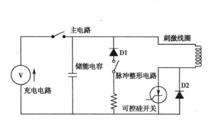 TMS設(shè)備最基本的簡(jiǎn)化電路由主電路和刺激線圈組成,主電路由充電電路、儲(chǔ)能電容、脈沖整形電路以及可控硅開關(guān)幾部分構(gòu)成。