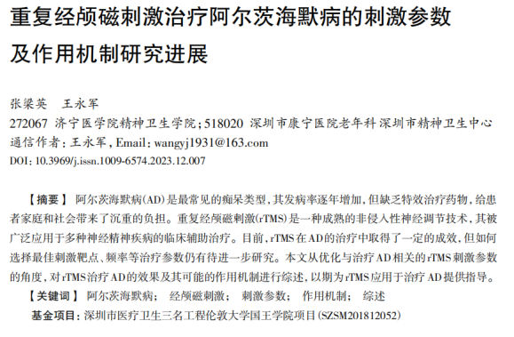 Interpretation of the literature on "Research progress on stimulation parameters and mechanism of action of repetitive transcranial magnetic stimulation in the treatment of Alzheimer's disease"